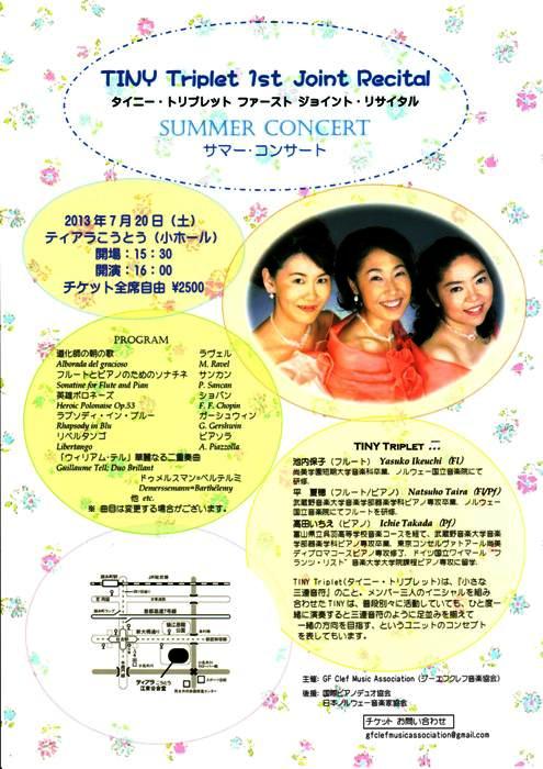 March 29, 2015 Tiny Triplet(タイニー・トリプレット) サマー・コンサート カテゴリ:協会主催コンサート終了 Tiny Triplet First Joint Recitalタイニー・トリプレット ファーストジョイントリサイタルSUMMER CONCERT サマー・コンサート2013年7月20日(土)ティアラこうとう(小)Poulenc: Sonate pour 4 mains Rachmaninov: 6 morceaux; II, VI タグ :#ピアノ#フルート#コンサート 「協会主催コンサート」カテゴリの最新記事 コメント コメントフォーム 名前 コメント 評価する リセット リセット 顔 星 投稿する 情報を記憶 バニラの香りとピアノの調べMeloduet メロデュエ ピアノデュオ 夏至の音楽夜